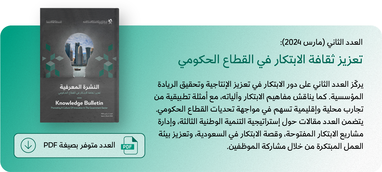 تُعد "النشرة المعرفيّة" إحدى مبادرات معهد الإدارة العامة بديوان الخدمة المدنيّة والتطوير الحكومي،